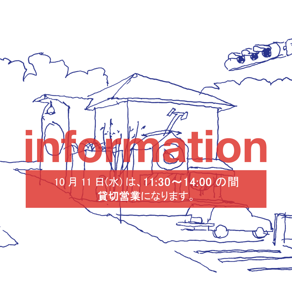 いつも山鳩をご利用いただきありがとうございます。 10月11日(水)は、11:30〜14:00ごろまで貸切営業…