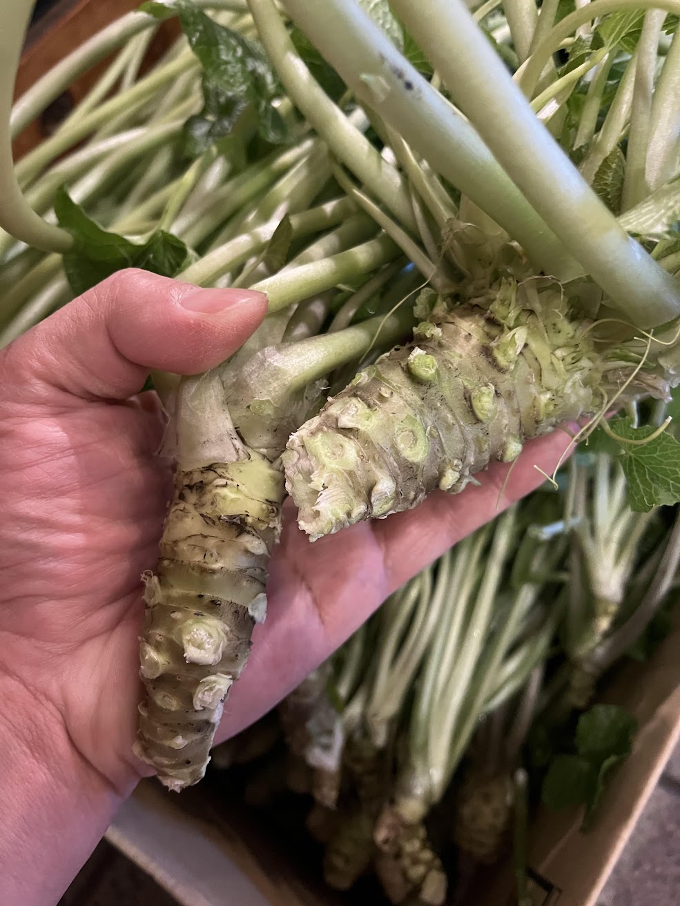 今シーズン、最初のワサビが納品されました。あの苦痛と味が蘇る(><) #山鳩 #山鳩山荘 #奥多摩…