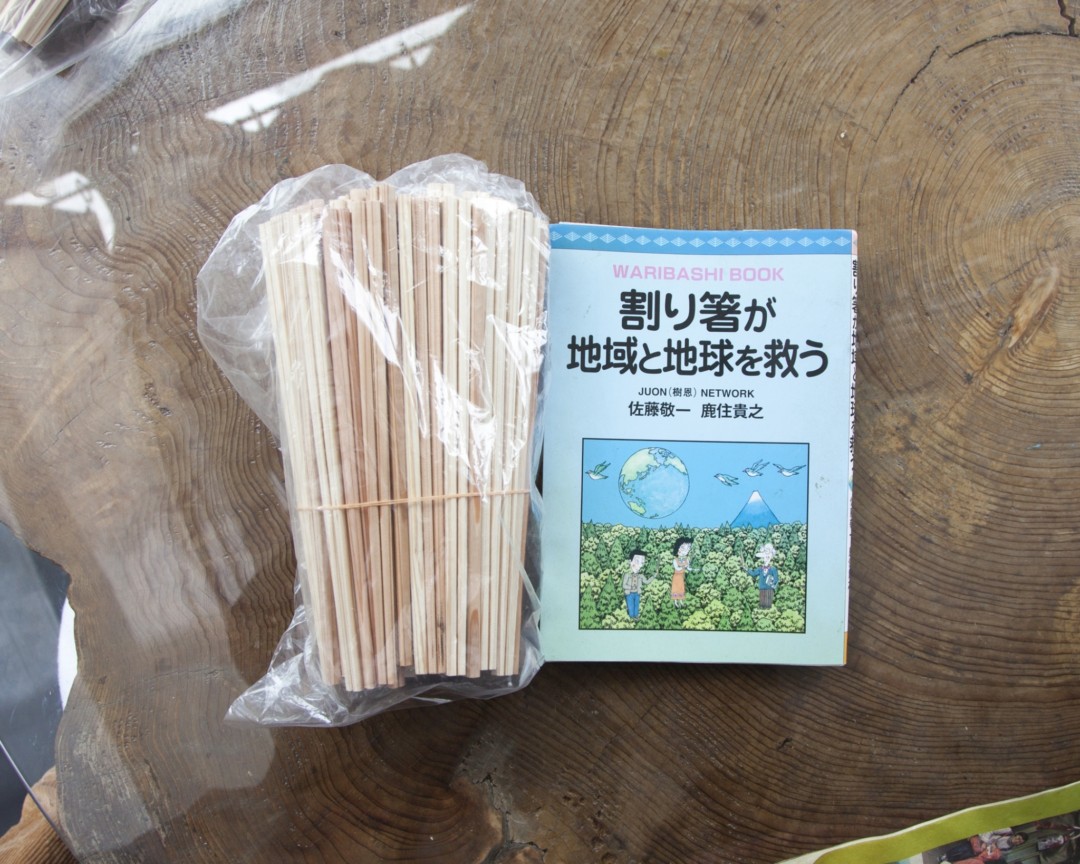 山鳩で使用している割り箸は、西多摩の森で育った杉の間伐材を使い、障がい者福祉施設「山の子の家」で作ったものです…
