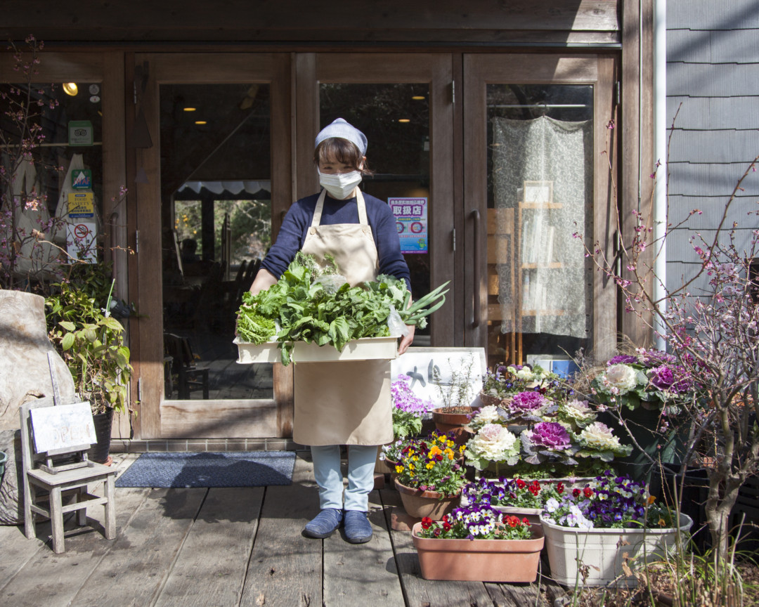 新田山ファームの春の野菜が届きました。持っているのは勤続20年以上のえっちゃん。先を読み何でもテキパキこなす事…