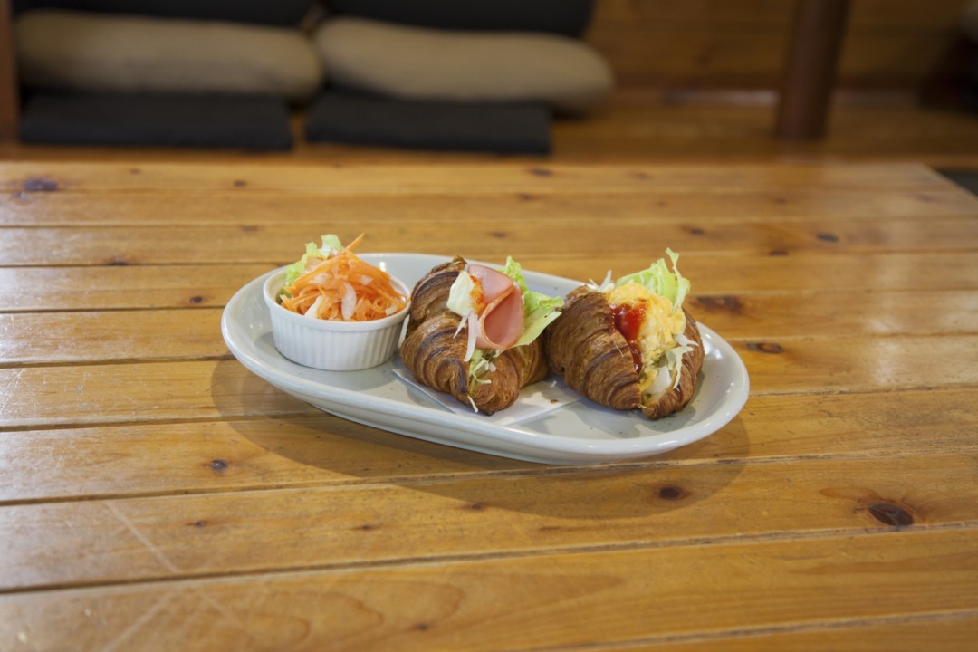 ハヤシライスとそばサラダに隠れがちですが、とってもファンの多いクロワッサンサンド。 テイクアウトも出来ます。 …
