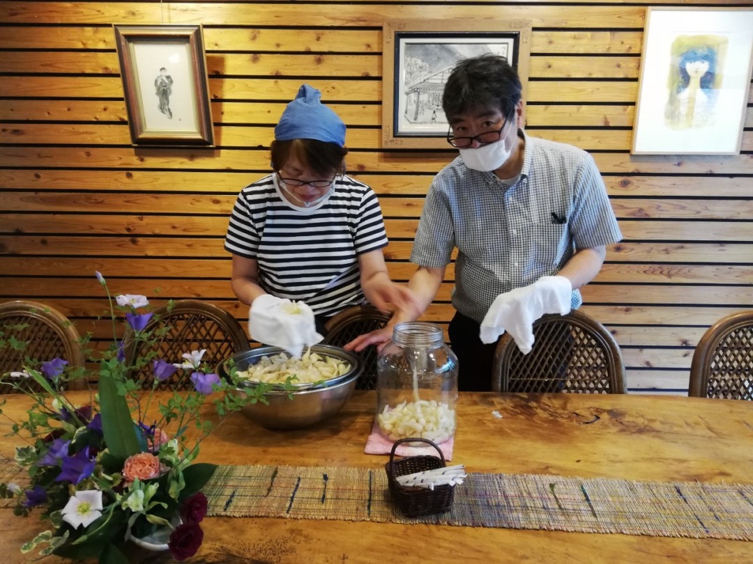 通称「はとばあちゃん」と「ゴッコンじいじ」がらっきょうを漬けました。 #山鳩 #山鳩山荘 #奥多摩 #らっきょ…